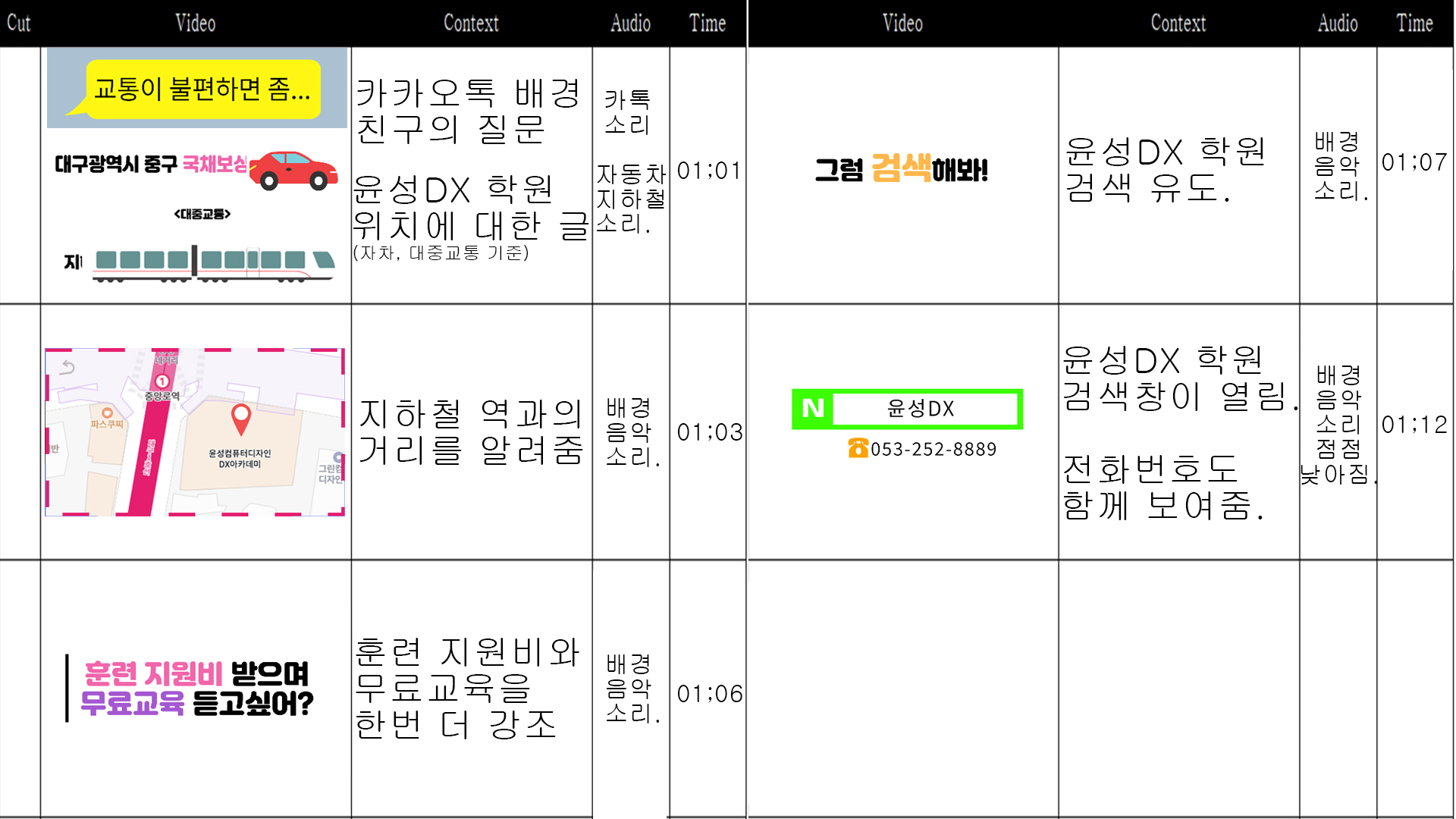 사이니지 광고 영상이기에 소리가 들리지 않아도 한눈에 알아볼수 있도록 자막등에 신경써서 작업을 진행하였습니다.