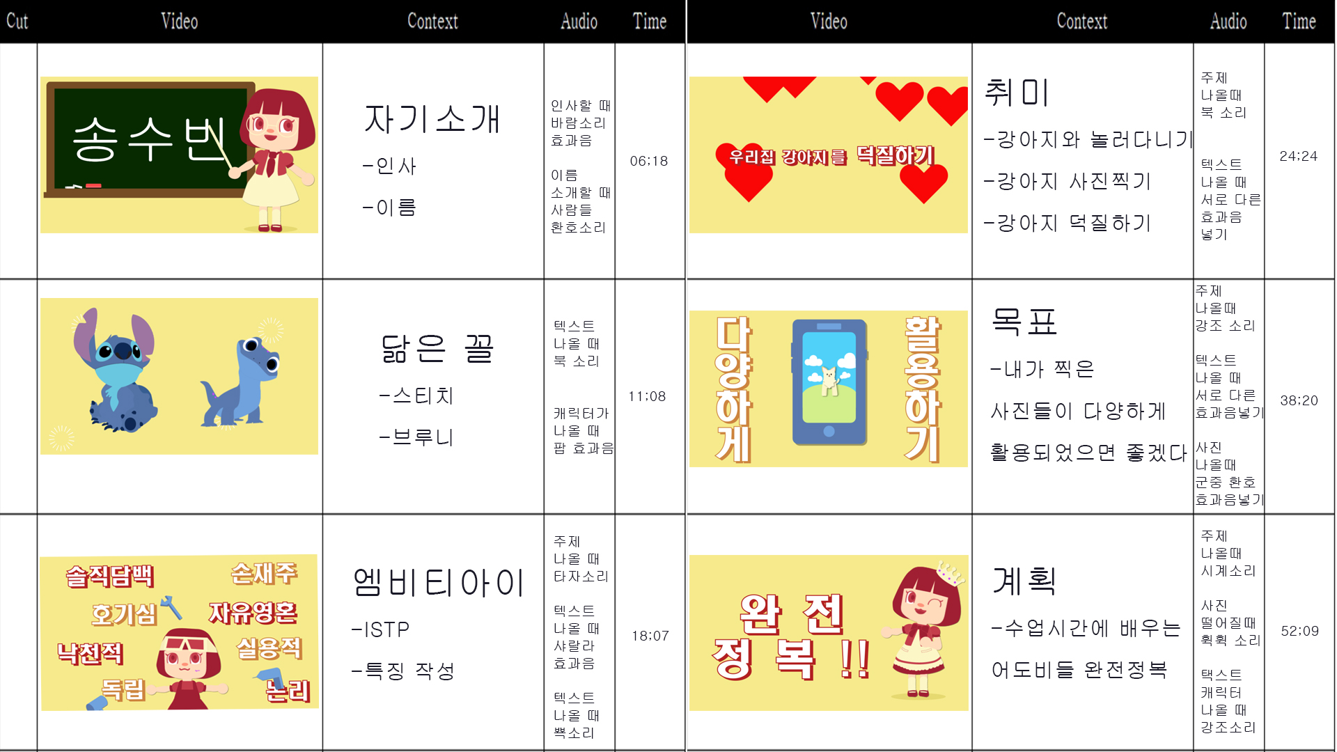 수업에서 배운 내용을 영상에 넣으려고 노력해보았는데 그 부분을 선생님께서 캐치해주시고 언급해주셔서 뿌듯하였습니다.